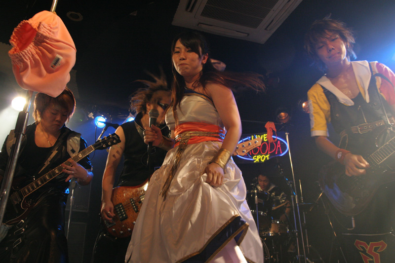 ![]() 蹴り倒されるボーカル。 |